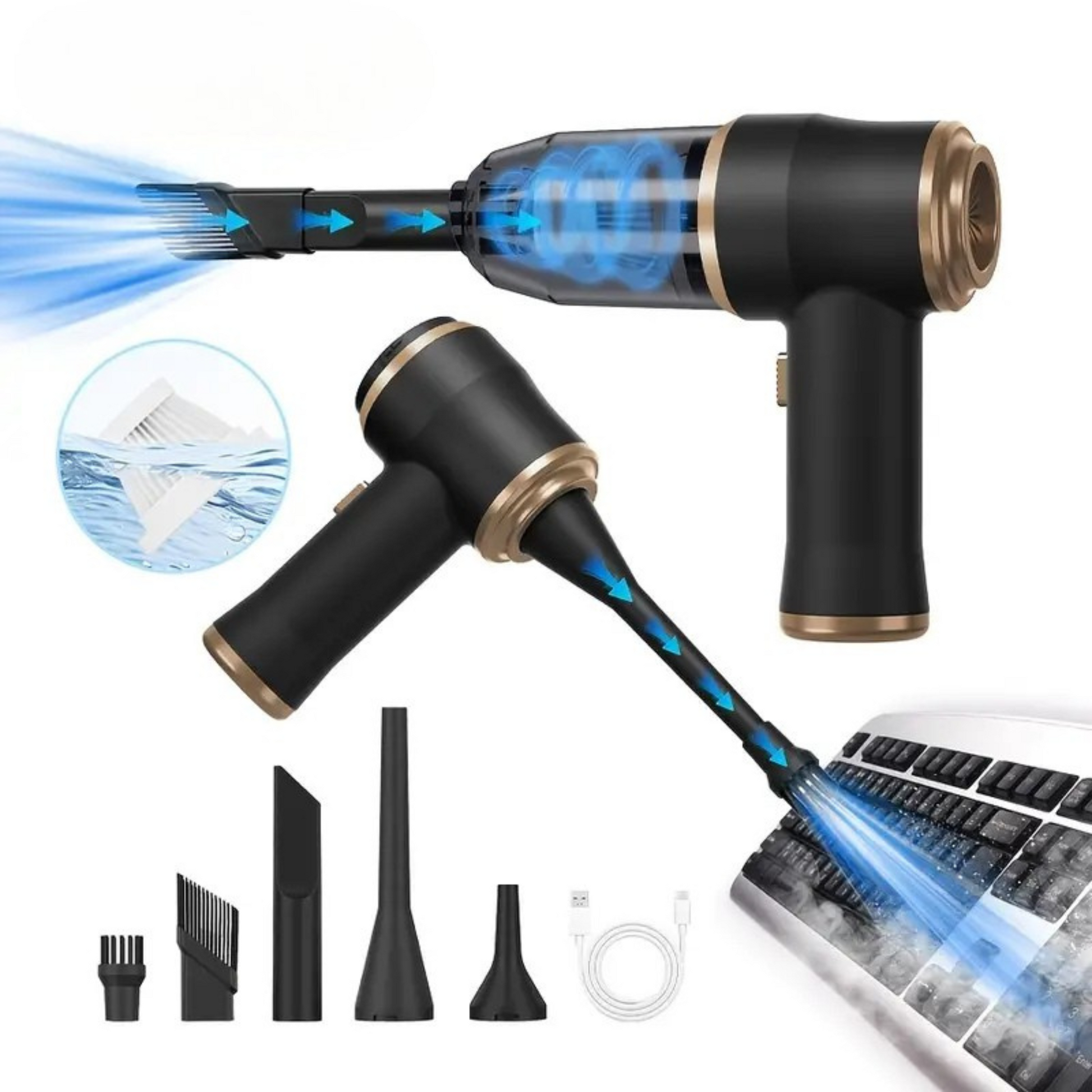 さらにブロワー機能付きだから、パソコンやキーボードの細かいホコリを「吹き飛ばす」ことも可能!