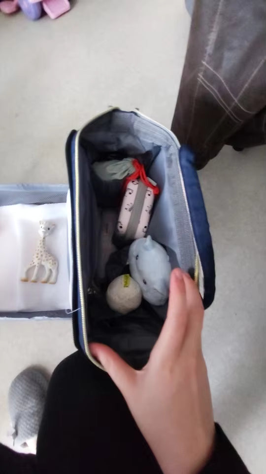 外出先でのおむつ替えスペース探しは、もう不要です。NestPack™は、背面のポケットが展開し、清潔でクッション性のあるおむつ替えスペースに早変わり。どんな場所でも、赤ちゃんに快適で衛生的な環境を、さっと提供できます。